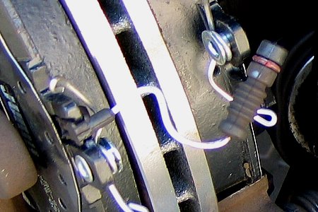 バネ付きのパッドだとキャリパーを下げると当って押し戻されるようになります