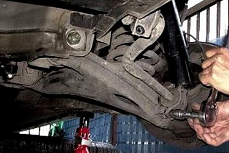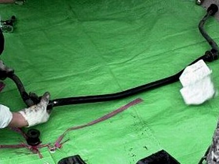 スタビライザーを外します内側は13mmの上下ボルト&ナットです