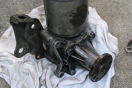 300E−24の場合は冷却ファンのプーリーで右(奥)のボルトが見えません