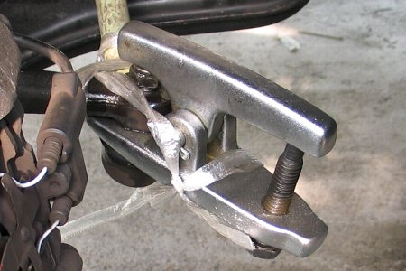 たたいて外す人もいますがここはスマートにタイロッドエンドプーラーを使います