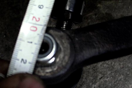 仮り止めしてまた長さを計りますタイロッド本体の出し入れで長さ調整します