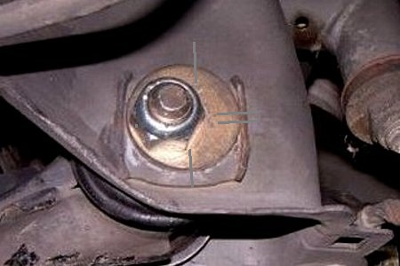 ジャッキアップをして偏心ボルトを180度回しますこれでも跡がピッタシ