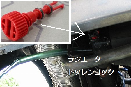 LLCを抜きます 下の赤いコックを回すと水が出てきます