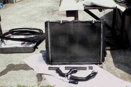 ラジエーターと外した部品 |