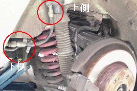 ブレーキホースと同じように外すのは下側(ダブル)から