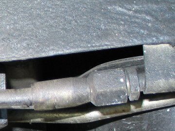 車体側パイプと油圧ホース下側 |