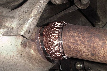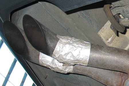 ジャッキアップしてタイコの前後、パイプの曲がりにも巻いてみました