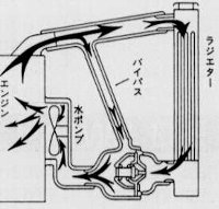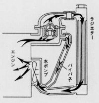 クーラントが温まってくるとサーモスタットが開いてラジエーターから冷たい水