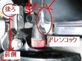 冷却水が抜けたらドレンコックを忘れずに締めて邪魔になりそうなホースを外します