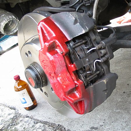 後ろはゴムホースでしたので比較的簡単でしたがキャリパーを止めているボルトの位置が