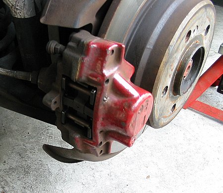 奥で見難く大変です W124にはリヤ側のセンサーはありませんし片押し2ポットです