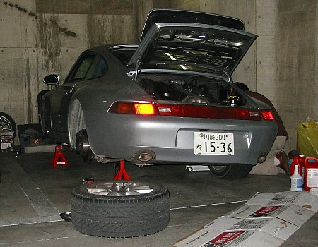 本日の作業はこれにて終了 タイヤを付けてポルシェを下ろします