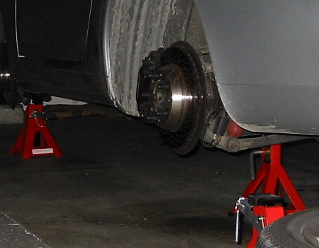 早速ジャッキアップです が、片側づつ上げていきます 前後でなく左右です