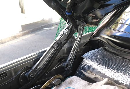 124のフードヒンジは、意外と「油切れ」でヒンジに負担がかかり