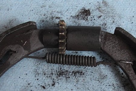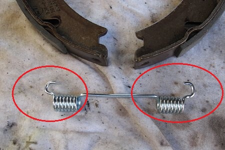 フリーになったら「下側リターンスプリング」を外してシューを広げて外します