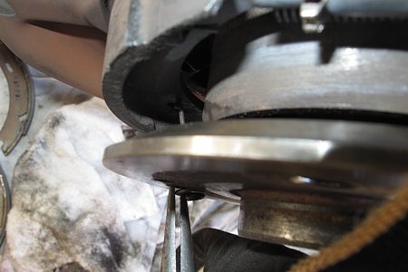 シューを広げて車輪/ディスクを回せなくなったら刻み付きリングを