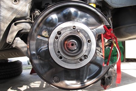 W124の場合はこのようにタイヤを外して調整します面倒ですね