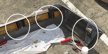 いきなり外れた状態ですが基本はフロントバンパーと同じです