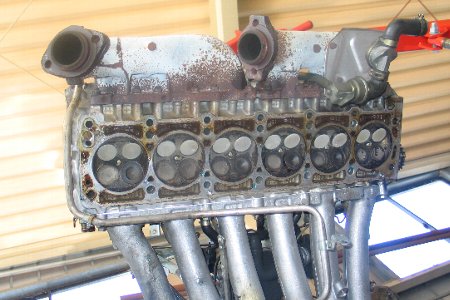 このような状態で外しました 台の上に置き吸気排気類を外していきます