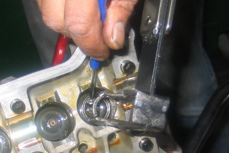 「バルブスプリングコンプレッサー」でバルブを落とします