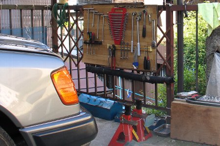 大掛かりな整備になりますので工具はきっちり整理して自作工具棚に並べます