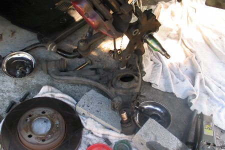 ようやっとロアアームが外せました さてブッシュを取り外して圧入して取り付けます