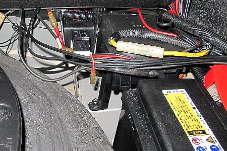 W202はトランクにバッテリーがあります(配線が汚いですね)