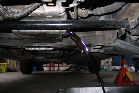 デフにジャッキをかけて後ろ側を持ち上げます新たにオイルがでてきます