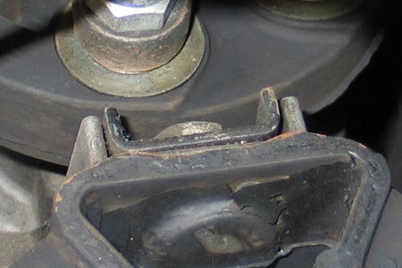 ブラケットを外すとこのようになっています今回交換予定のミッションマウントです