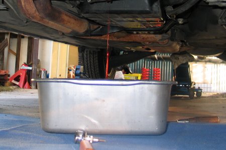 オイルパンの残ったオイルも廃油入箱に入れて正確な量を測ります(フィルター分も)