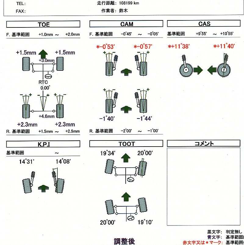 さて待望の「4輪アライメント」の測定結果です