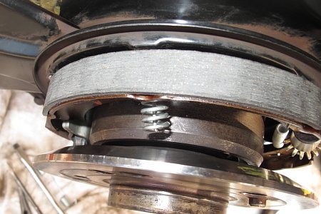 ホイルボルト穴からドライバーなどでリングを回してシューを広げます