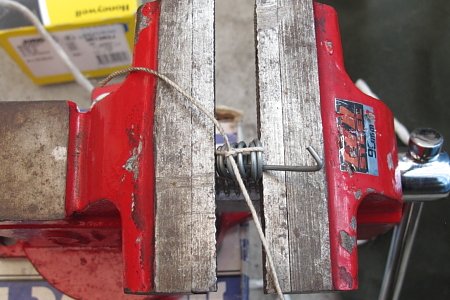 スプリングを縮めてタコ糸で縛りますこれでフックの部分が飛び出ます