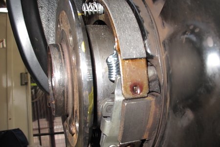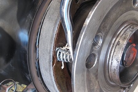 シューを広げて車輪/ディスクを回せなくなったら刻み付きリングを