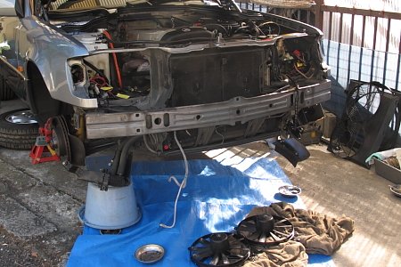 最初の作業は「マイレの電動ファン」から「純正の電動ファン」に交換です