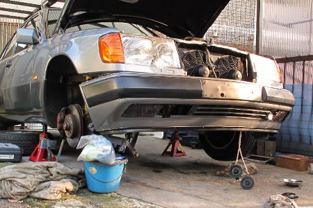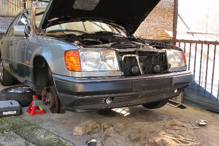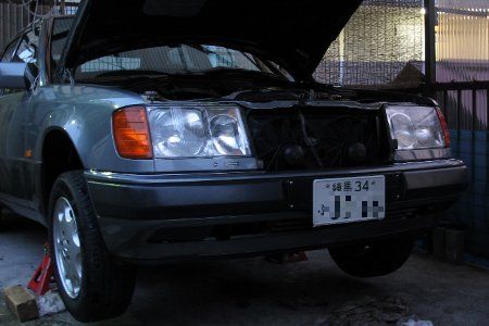 バンパーを取り付けますバケツの上はATオイルクーラーぶら下がっているのはホーンです