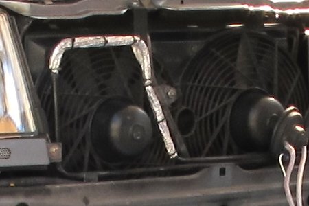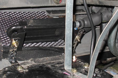 パワステオイルクーラーはこのようにステーで固定しました もう少し工夫したいところです