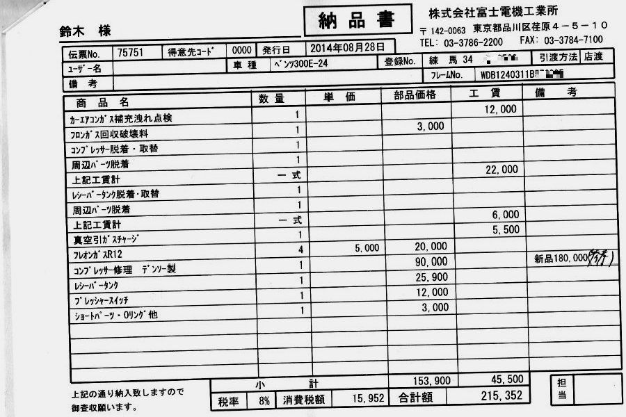 最高速号(W124300Eー24)とうとうエアコンが駄目になりました
