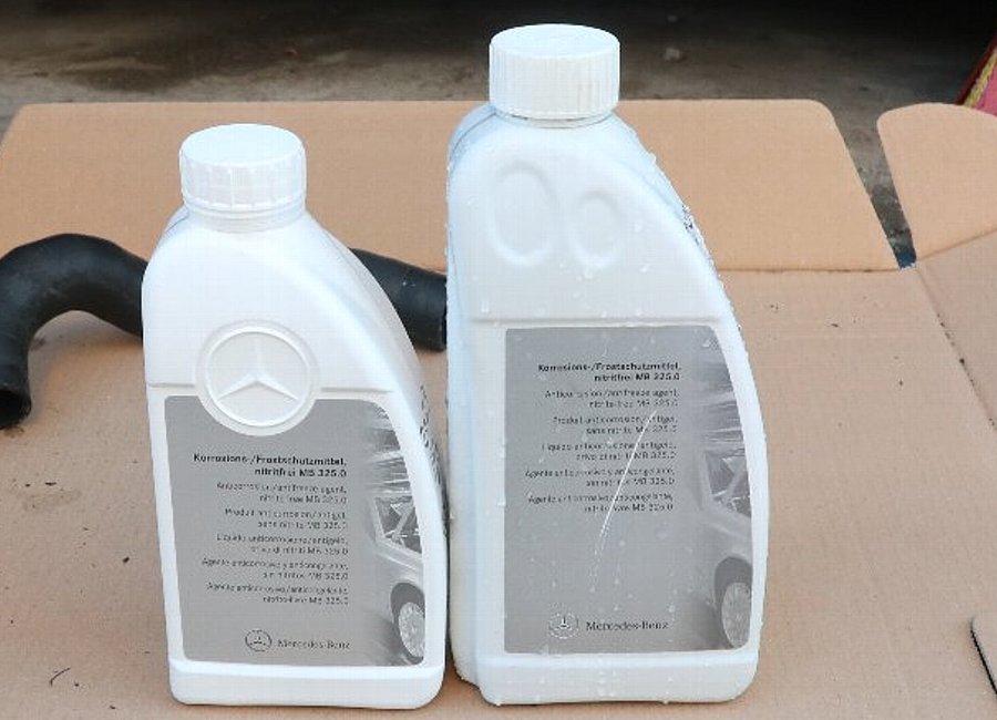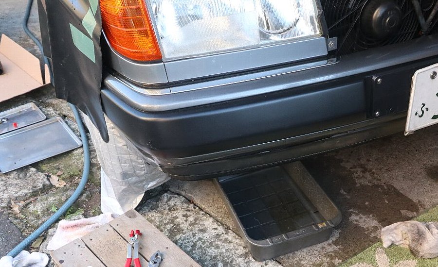 エンジンを止めて純粋を抜いて冷却水を入れます
