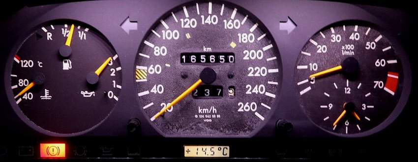 165650km 外気温14.5℃ 汚れてきたメーター盤 |
