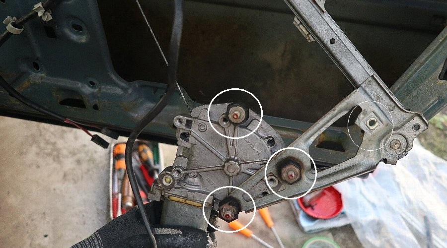 | 下側の10mmボルトと3個のナット | 上側の10mmボルト |