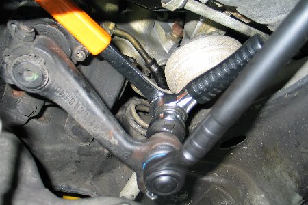 「センターロッド」を仮り止めをしてから「タイロッド」を外します