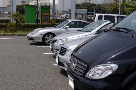 駐車場で後ろ姿 |