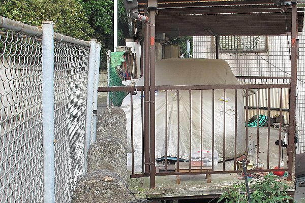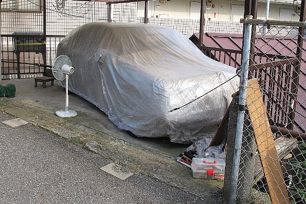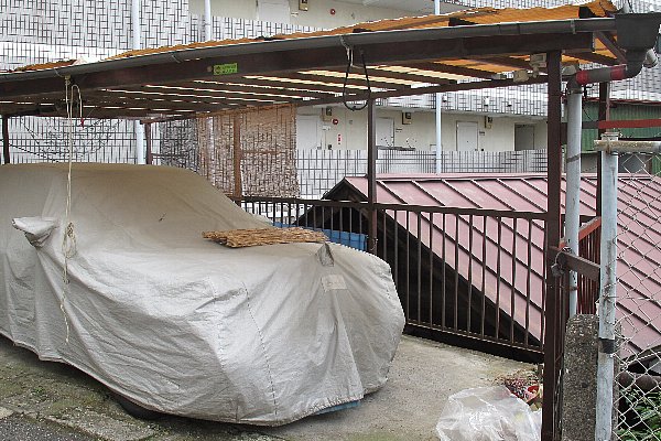 左側を始める前にクルマを右に寄せて波板を外します灼熱の太陽暑いです