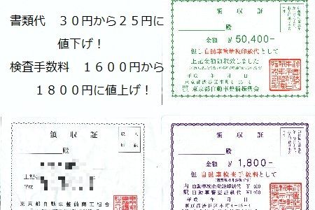 重量税印紙代=50400円 検査登録印紙代=1800円 継続検査申請書=20円