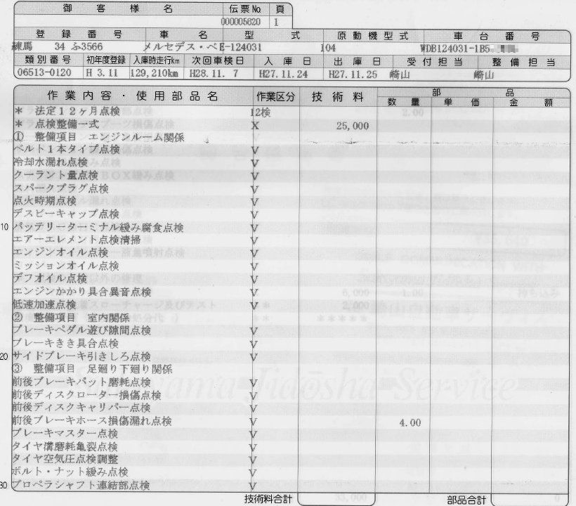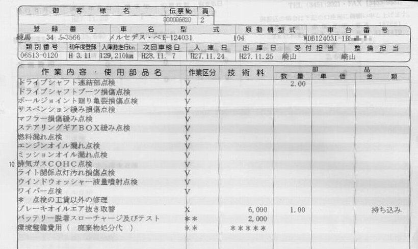 W124 300Eー24 12ヶ月点検 崎山自動車サーヴィス 12ヶ月点検費用