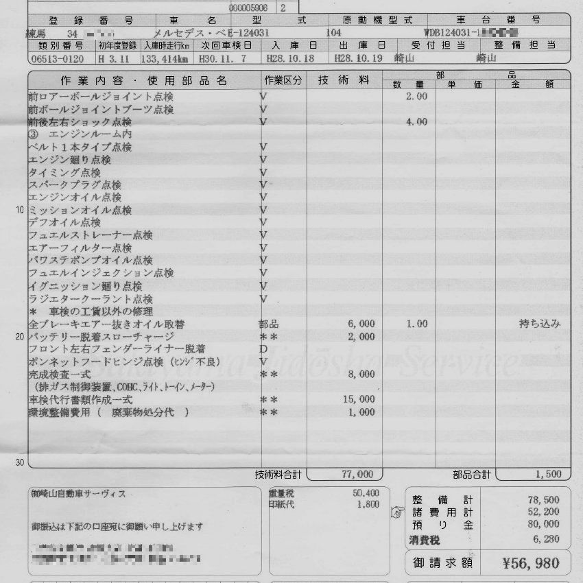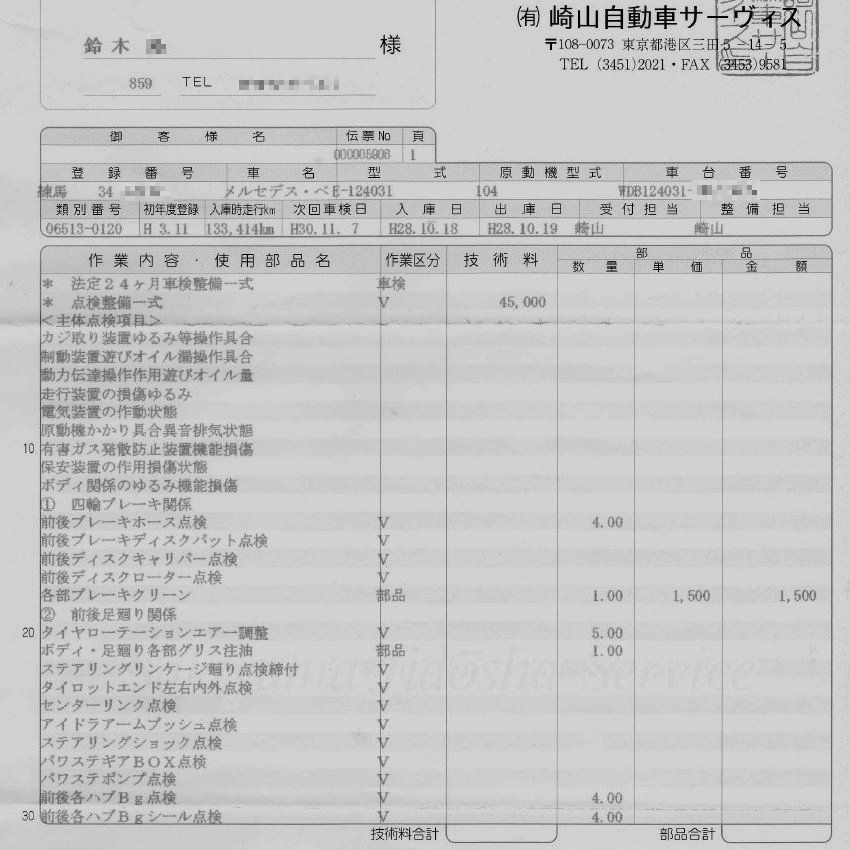 プロに頼んだ車検&エンジン調整他いろいろその明細書です