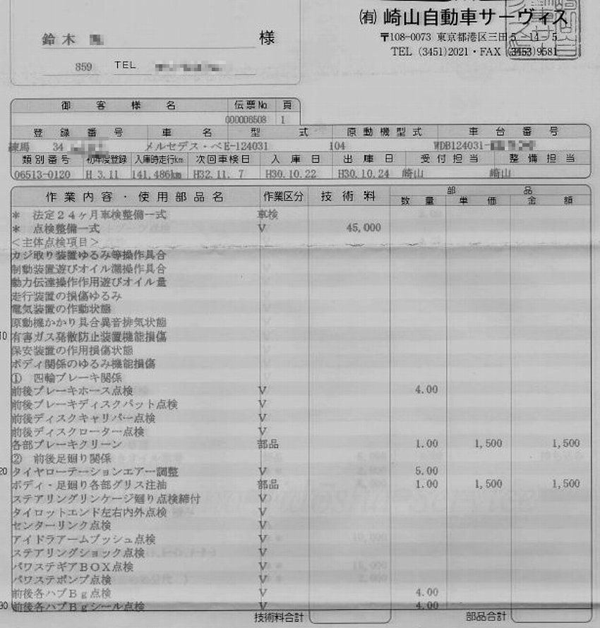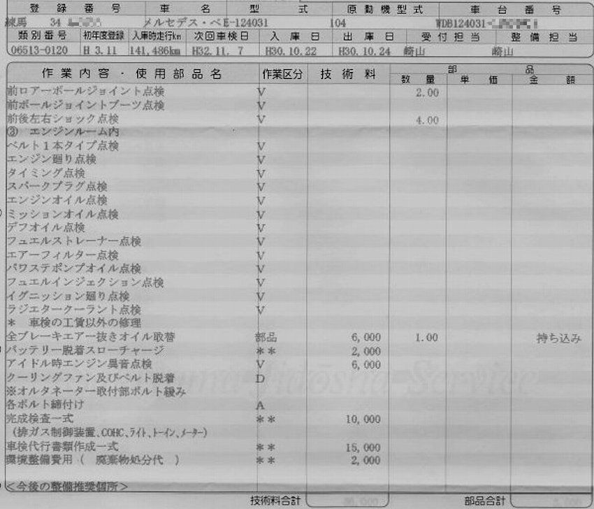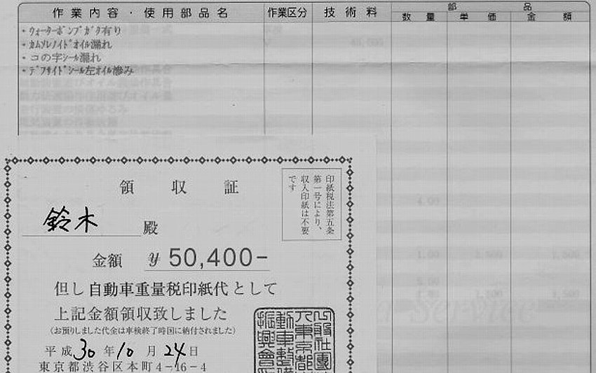 プロに頼んだ車検&エンジン調整他いろいろその明細書です
