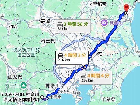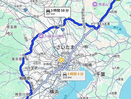 小田厚道→首都高速→常磐道 216km |