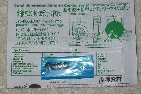 パナ製「超小型コンデンサーマイクWM−E13UY」4個で200円